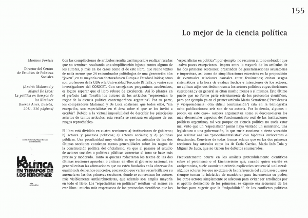 Reseña de la obra de : Andrés Malamud y Miguel De Luca: La política en tiempos de los Kirchner. Buenos Aires, Eudeba, 2011, 336 páginas.