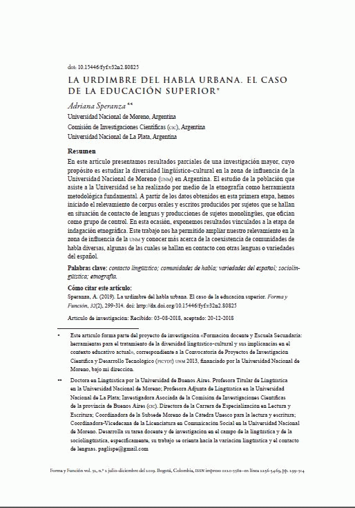 En: Forma y función Vol. 32, No 2 (Jul-Dic. 2019)
