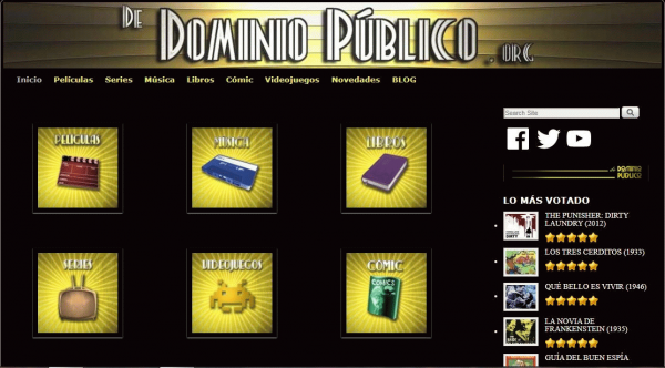 De dominio público es una plataforma donde se pueden encontrar películas, música, libros, series, videojuegos y cómic que ya cumplieron con su plazo de vigencia (dependiendo del país, entre 25 y 100 años) de acuerdo a la legislación de propiedad intelectual, es decir, cualquier persona puede exhibir, emitir y crear obras derivadas o modificarlas según sus necesidades.