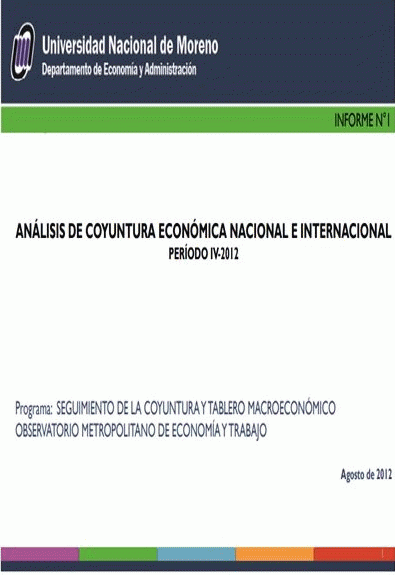 Análisis de coyuntura económica nacional e internacional [recurso electrónico] : período IV-2012 / Universidad Nacional de Moreno.