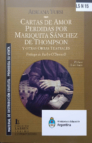 Cartas de amor perdidas por Mariquita Sánchez de Thompson : y otras obras teatrales / Adriana Tursi ; prólogo, Pacho O'Donnell.