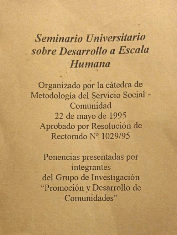 Seminario universitario sobre desarrollo a escala humana / Alberto José Diéguez ; Pablo Carlos Straccia ; María Alejandra Rascio ; organización, Cátedra de Metodología del Servicio Social - Comunidad.