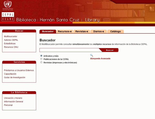 La Biblioteca de la Comisión Económica para América Latina y el Caribe (CEPAL) se encuentra ubicada en el edificio de las Naciones Unidas en Santiago de Chile. La Biblioteca fue creada en 1948 para brindar servicios de información especializados sobre el desarrollo económico y social de América Latina y el Caribe, en apoyo del programa de trabajo de la Comisión. Contiene un multibuscador que proporciona el