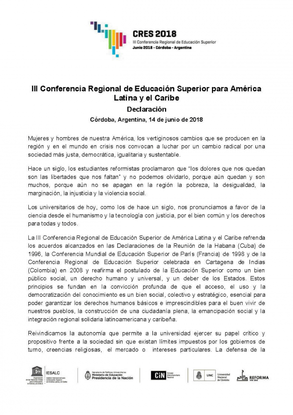III Conferencia regional de educación superior para América Latina y el Caribe.