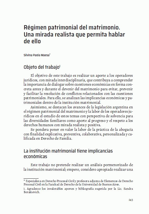 Régimen patrimonial del matrimonio : una mirada realista que permita hablar de ello /