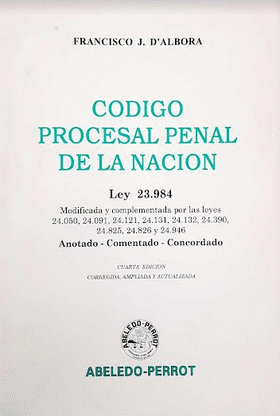 Código procesal penal de la nación : Ley 23.984 : modificada y comentada por las leyes 24.050, 24.091, 24.121, 24.131, 24.132, 24.390, 24.825, 24.826 y 24.946 : anotado, comentado, concordado / Francisco J. D'Albora. por