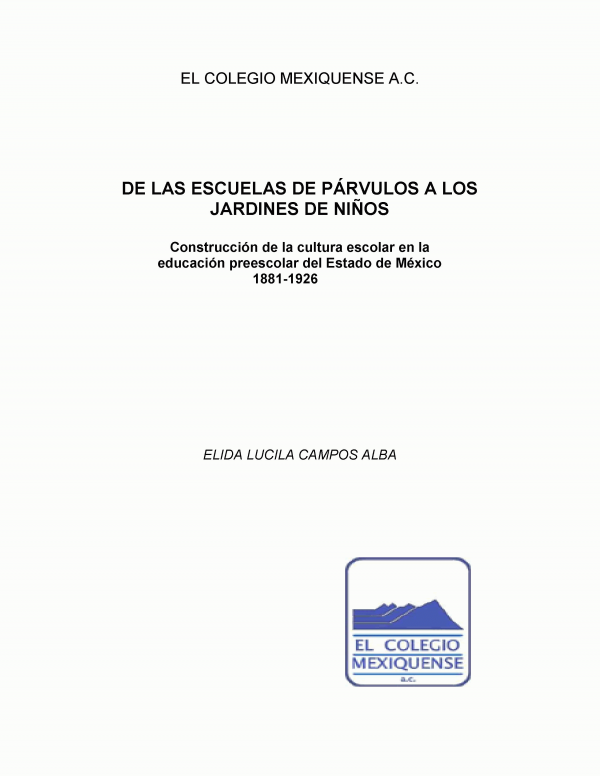 De las escuelas de párvulos a los jardines de niños : construcción de la cultura escolar en la educación preescolar del Estado de México 1881-1926 /