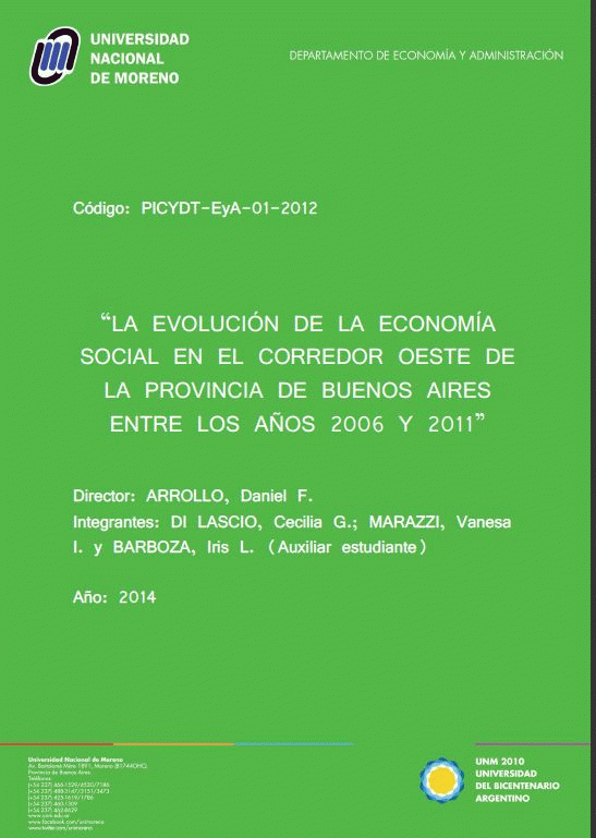 La evolución de la economía social en el Corredor Oeste de la Provincia de Buenos Aires entre los años 2006 y 2011