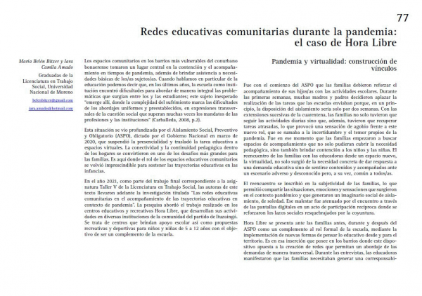 Moreno : Universidad Nacional de Moreno, 2013.- Año 8, No 8 (Invierno 2022), p. 77-81.