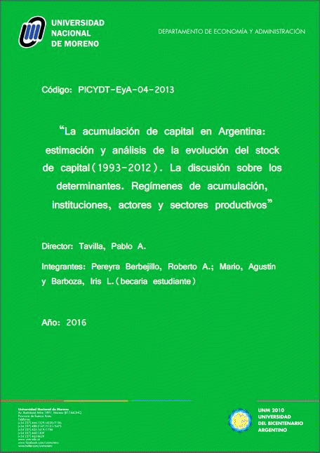 estimación y análisis de la evolución del stock de capital (1993-2012). La discusión sobre los determinantes. Regímenes de acumulación, instituciones, actores y sectores productivos /